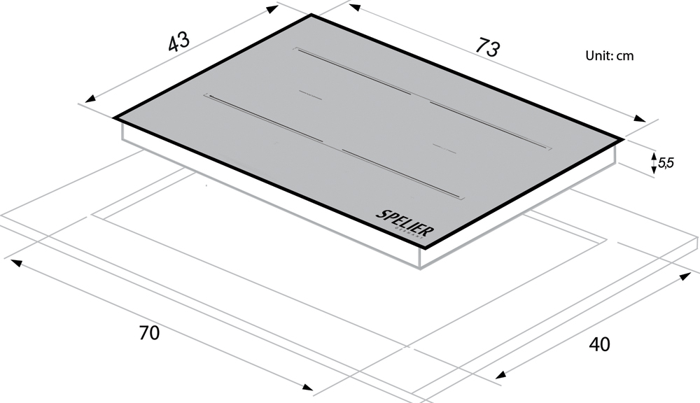 • Kích thước bếp (D x R x C): 73 x 43 x 5,5 cm