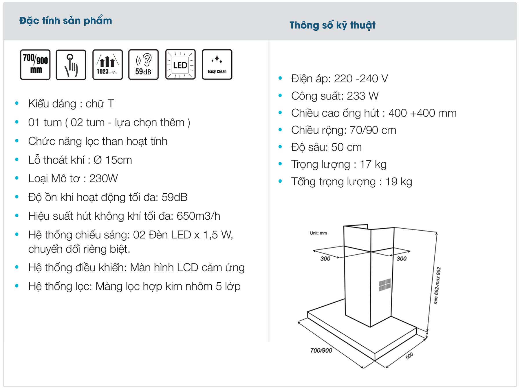 Đánh giá HÚT MÙI SPELIER SP 109 (70CM)