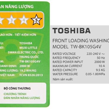 Máy giặt Toshiba có khối lượng 9.5kg, đáp ứng cho nhu cầu giặt giũ của những hộ gia đình có từ 5 – 7 thành viên, hoặc những gia đình ít người hơn nhưng cần làm sạch nhiều quần áo trong mỗi lần giặt.